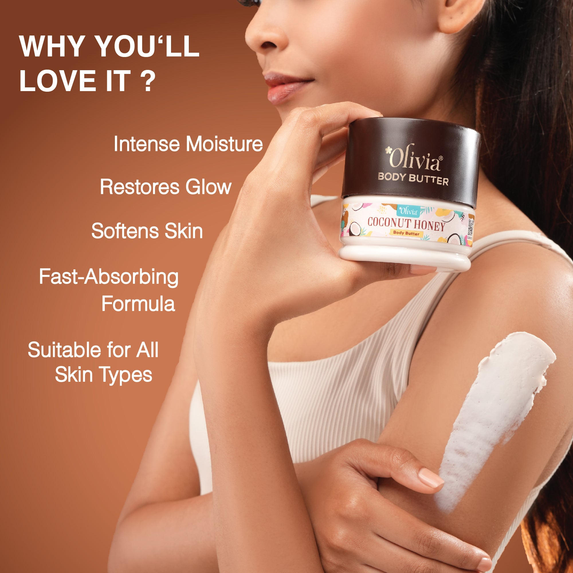 Indulge your skin in the ultimate nourishment with Olivia Coconut Honey Body Butter, a rich and luxurious blend of pure coconut oil and golden honey. Designed to deeply hydrate and restore moisture, this body butter melts effortlessly into your skin, leaving it soft, smooth, and beautifully radiant. The natural goodness of coconut oil replenishes lost hydration, while honey acts as a humectant, locking in moisture for long-lasting softness. Beyond hydration, this body butter enhances your skin’s natural glow, giving it a tropical radiance that feels as good as it looks. The velvety texture absorbs quickly without a greasy residue, making it perfect for daily use. The irresistible scent of creamy coconut and sweet honey creates a sensory escape, transforming your skincare routine into a spa-like indulgence. Ideal for all skin types, Olivia Coconut Honey Body Butter provides intense nourishment, improves elasticity, and helps protect your skin from dryness. Whether you’re starting your day with a burst of moisture or winding down with a soothing self-care ritual, this luscious formula ensures your skin feels pampered and refreshed. Elevate your skincare routine and embrace the tropical bliss of coconut and honey—because your skin deserves the best.